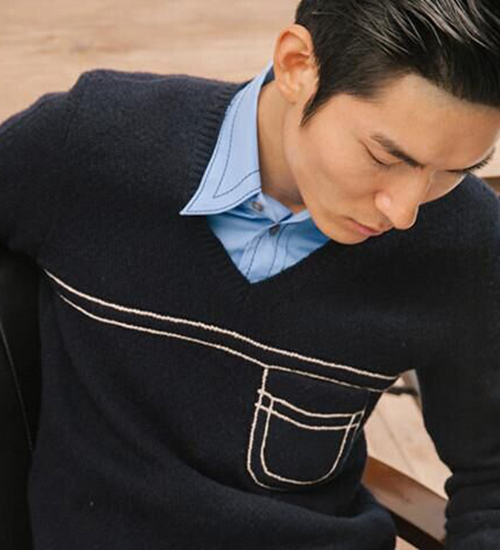 WAY 4:领子放在毛衣外面,衬衫扣子解开
