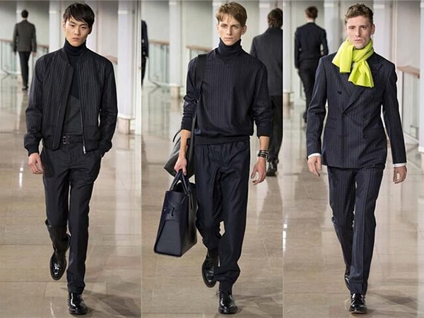 以看似保守的灰色西服套装开场是个明智的选择。优雅的双排扣与经典的两粒扣,似乎立马下了秀场就有世界各地的男星来演绎了。除了精良的剪裁与廓型以外还融入了些许的科技感,使精英男士们看起来更加都市化,魅力加分、优雅升级。 【经典细条纹面料回归除了西装还有啥】