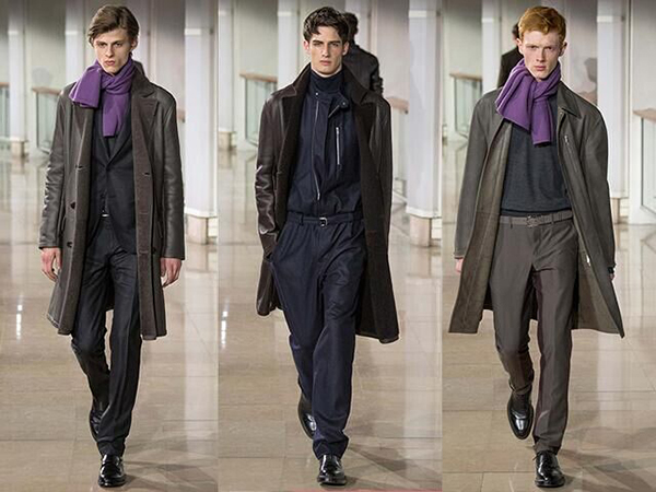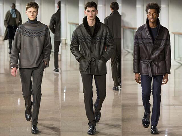 西装羊毛衫已经成为男士代表自身风格和品味的重要标志,除了单一色彩的西装,此次爱马仕秀场格纹装回归,不论是内搭的羊毛衫还是外搭的西服,都掩盖不住格纹十足的优雅风格,再搭配条爱马仕的经典围巾,型男风格你也可以轻松驾驭。 【皮衣走路生风 闪耀奢侈光泽】