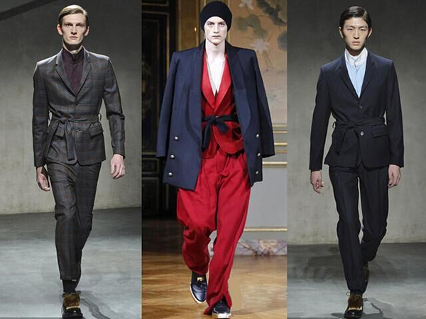 浴袍式的大衣已经不少见了,近两年风头更劲,各大经典老牌也是加入新创意后再推出,现在品牌年轻化是一种时尚趋势了。在西服上系带可是头一回。